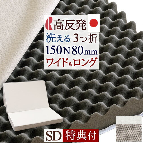 12/1限定★11%OFFクーポン [西川特典シーツ付] マットレス 折りたたみ セミダブル 日時指定OK ロマンス小杉 凹凸ウレタン敷きふとん ウレタンマット高反発マットレス 三つ折り 150N かため 厚さ80ミリ 日本製 セミダブル