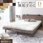 ベッド すのこベッド ダブル コンセント付 頑丈 すのこ 敷布団 ダブルベッド 木製 宮付き 北欧 ベッドフレーム スタンダードポケットコイルマットレス付き
