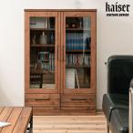 【Kaiser】天然木書棚 幅80 高さ117.5 西海岸インテリア ミドルロータイプ ブラウン 本棚 コミックラック おしゃれ オシャレ 扉付き ガラス扉 食器棚 カップボード キッチンボード ブックシェルフ モダン ヴィンテージ 薄型 雑誌収納 高さ120