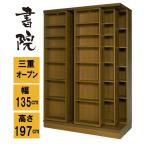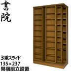 スライド書棚 本棚 書院 大容量 三重スライド式 オープン 幅135cm 3LSI-135 日本製 配送・開梱・設置