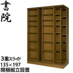 スライド書棚 本棚 書院 ハイタイプ 大容量 三重スライド式 オープン 幅135cm 3LSH-135 日本製 配送・開梱・設置