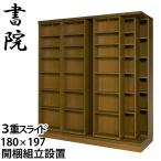 スライド書棚 本棚 書院 大容量 三重スライド式 オープン 幅180cm 3LSI-180 日本製 配送・開梱・設置