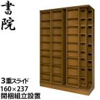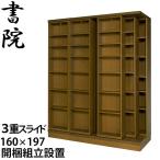 スライド書棚 本棚 書院 大容量 三重スライド式 オープン 幅160cm 3LSI-160 日本製 配送・開梱・設置