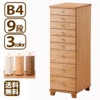 チェスト B4サイズ 9段 木製 書類収納 クリスタル調 取っ手 木脚/キャスター選択可 引き出しいっぱい 日本製 ほぼ完成品 送料無料