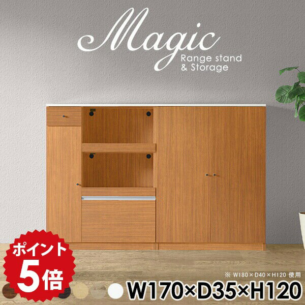 扉付きラック 本棚 収納 棚 書類収納 A4ファイル 扉付き おしゃれ キャビネット ホワイト 白 レンジ台 食器棚 キッチン収納 机 炊飯器 キッチンカウンター 日本製 スライドテーブル コンセント付 コード穴 扉付き収納 収納棚 【幅170 奥行35 高さ120cm RS 木目】 ☆