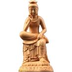 弥勒菩薩 置物 桧木製 木彫り 原木色 半跏思惟像 仏像 フィギュア(Size:12センチ)