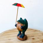 傘さしカエル M かえる カエル 置物 木彫り 木彫りのカエル インテリア置物 アジアン雑貨 ユーモア雑貨 面白雑貨 ディスプレイ