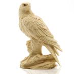 黄楊 一木彫り 鷹 置物 オブジェ インテリア 約14cm 黒曜石の眼 彫刻作品 玄関 書斎 デスク 正規品