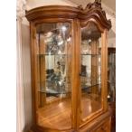 イタリア輸入 アンティーク調 ブラウンウッド ガラス張りと木彫りのモチーフがおしゃれな初期棚 カップボード