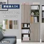 本棚 スリム 大容量 扉付き a4 薄型 幅90 おしゃれ 収納ラック 隠せる 可動棚 オープンラック シェルフ 高さ180 北欧