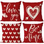 【並行輸入品】YeeJu ハッピーバレンタインデー 枕カバー 24x24 4枚セット 結婚記念日 スロー枕カバー レッド ラブ ハート クッショ