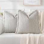 【並行輸入品】MIULEE カーキ 枕カバー 20x20インチ ストライプ ファームハウス カウチ スロー 枕カバー フリンジ付き シック リネ