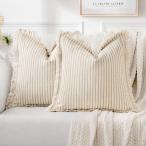 【並行輸入品】MIULEE クリーム コーデュロイ 枕カバー 2枚セット ボーホー 装飾 スプライス スロー 枕カバー ソフト 無地 カウチ 枕