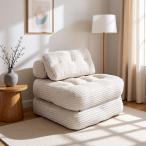 【並行輸入品】折りたたみ式ソファベッド、コーデュロイ円形ボーンレスカウチ、組み立て不要コンバーチブルスリーパーソファ、枕3つ付き、快適な布団ソフ