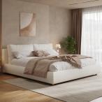 【並行輸入品】LUMISOL(ルミソル) キングサイズ 布張りプラットフォームベッドフレーム、モダンなベッドフレーム、取り外し可能な枕ヘッドボー