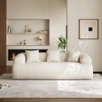 【並行輸入品】Farati ラグジュアリー モダン カーブ シェルパ ブークレソファ 3人掛け ミニマリストクラウドソファ 木製脚&枕付き