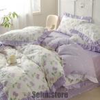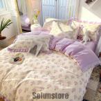 寝具カバーセット 掛けカバー 姫系 花柄 フリル ロマンティック 布団カバー フラットシーツ 枕カバー ボックスシーツ きれいめ ピーチスキン加工 通気性 速乾