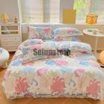 布団カバーセット 4点セット シングル 苺柄 花柄 超可愛い 秋冬 ふわふわ 暖かい フランネル ダブル クイーン ボックスシーツ フラットシーツ 枕カバー