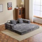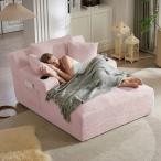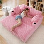 【並行輸入品】オーバーサイズ 長椅子 屋内用 布張り 骨なし クラウド カウチ チェア サイドポケット付き 枕 カップホルダー 快適 フェイクフ