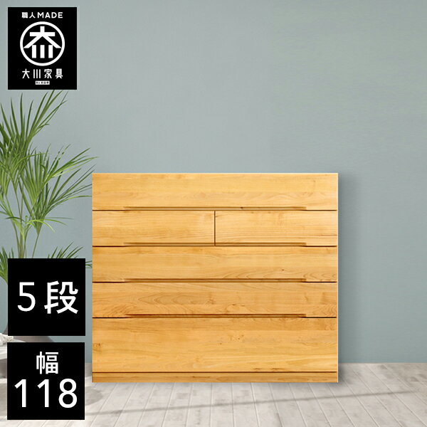 【開梱設置送料無料/受注製作】 桐チェスト 幅118cm 5段 奥行43.5 クローゼット収納 桐たんす 桐箪笥 完成品 衣類収納 アルダー 和風 チェスト 木製 118幅 桐 タンス 国産 大川家具 日本製