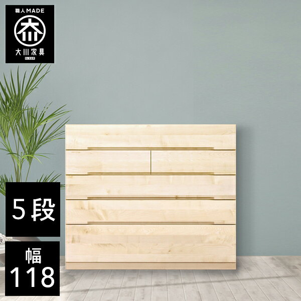 【開梱設置送料無料/受注製作】 桐チェスト 幅118cm 5段 奥行43.5 クローゼット収納 桐たんす 桐箪笥 完成品 衣類収納 メープル 和風 チェスト 木製 118幅 桐 タンス 国産 大川家具 日本製