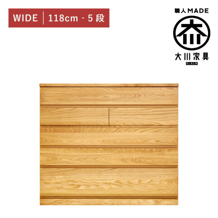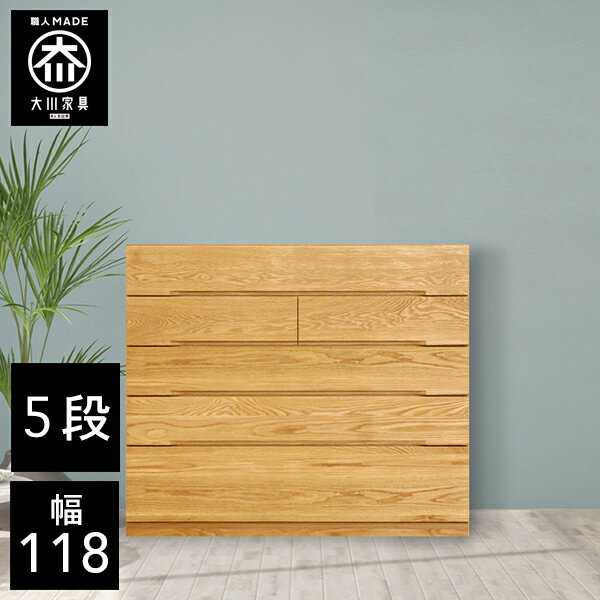 【開梱設置送料無料/受注製作】 桐チェスト 幅118cm 5段 奥行43.5 クローゼット収納 桐たんす 桐箪笥 完成品 衣類収納 オーク 和風 チェスト 木製 118幅 桐 タンス 国産 大川家具 日本製