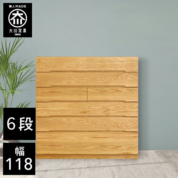 【開梱設置送料無料/受注製作】 桐チェスト 幅118cm 6段 奥行43.5 クローゼット収納 桐たんす 桐箪笥 完成品 衣類収納 オーク 和風 チェスト 木製 118幅 桐 タンス 国産 大川家具 日本製