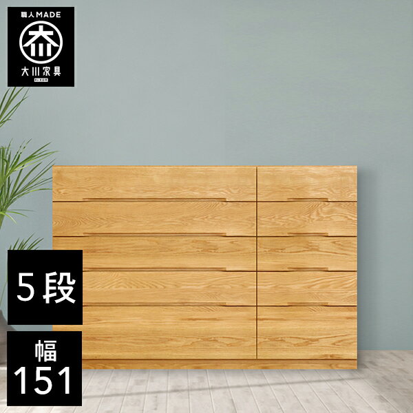 【開梱設置送料無料/受注製作】 桐チェスト 幅151cm 5段 奥行43.5 クローゼット収納 桐たんす 桐箪笥 完成品 衣類収納 オーク 和風 チェスト 木製 151幅 桐 タンス 国産 大川家具 日本製