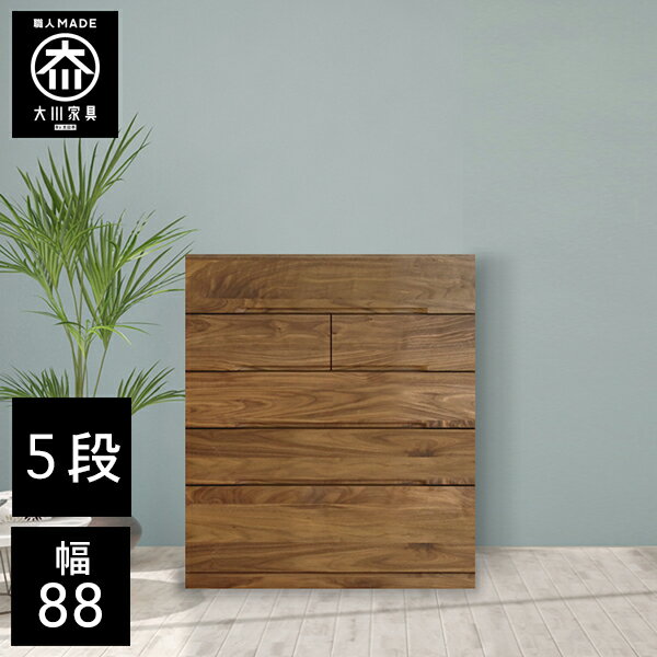 【開梱設置送料無料/受注製作】 桐チェスト 幅88cm 5段 奥行43.5 クローゼット収納 桐たんす 桐箪笥 完成品 衣類収納 ウォールナット 和風 チェスト 木製 88幅 桐 タンス 国産 大川家具 日本製