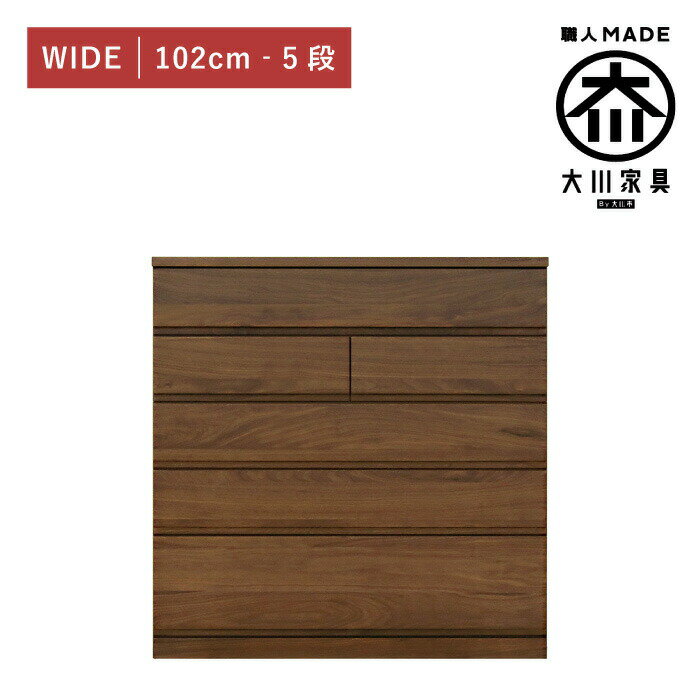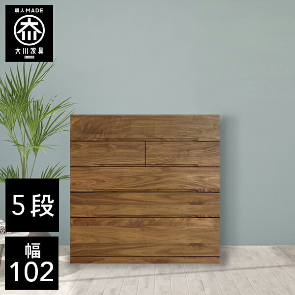 【開梱設置送料無料/受注製作】 桐チェスト 幅102cm 5段 奥行43.5 クローゼット収納 桐たんす 桐箪笥 完成品 衣類収納 ウォールナット 和風 チェスト 木製 102幅 桐 タンス 国産 大川家具 日本製