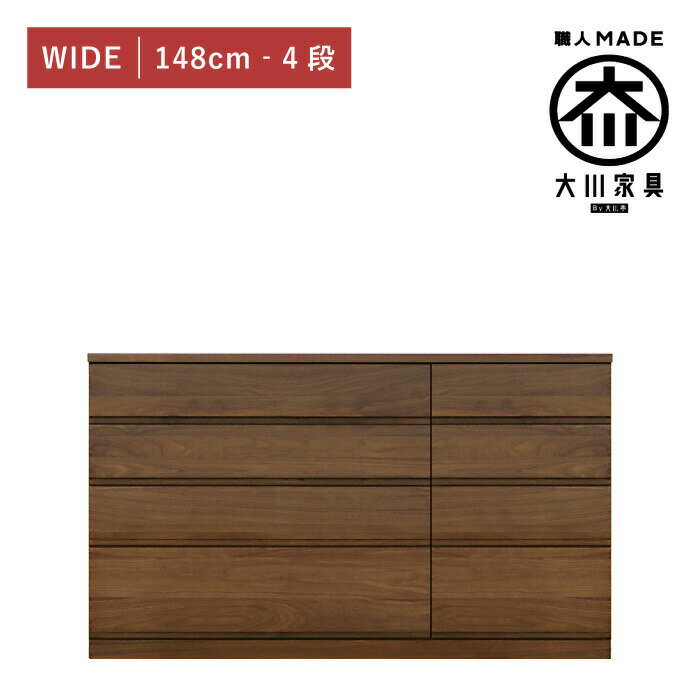 チェスト 完成品 タンス 幅150 4段 奥行44 ウォールナット 無垢 無垢材 木製 木 北欧 桐 衣類収納 引き出し リビング 収納 たんす 箪笥 婚礼 衣装ケース 桐タンス 桐チェスト 国産 日本製 大川家具 丸田木工 ミンクス