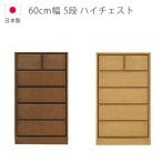 チェスト ハイチェスト 5段 幅60cm 木製 天然木 ブラウン 引き出し 北欧 シンプル おしゃれ リビング収納 衣類収納 突板 箪笥