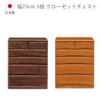 チェスト 幅75cm 完成品 収納 5段 洋服ダンス ローチェスト キャスター付き たんす 日本製 ウレタン塗装 フルオープンレール クローゼットチェスト 箪笥