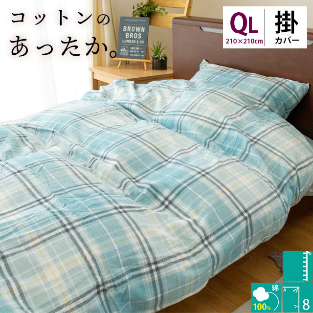 【30日20時〜2H限定10%OFFクーポン】毛布にもなる 掛け布団カバー クイーン クイーンロング 210×210cm 綿フラノ 「chantilly シャンティー」コットン100% あったか カバー 冬 起毛 綿100% ネル 掛けカバー 掛布団 掛けぶとんカバー チェック柄 暖かい【CTN】