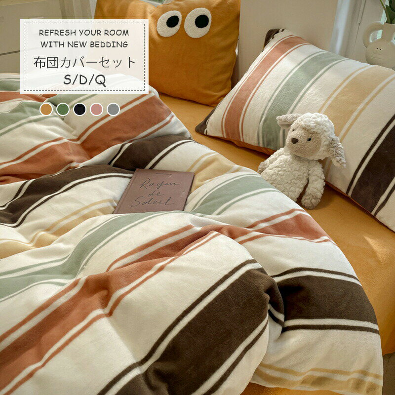 【20%OFFクーポン】布団カバー セット 冬 ストライプ フランネル 四点セット 掛け布団カバー ベッドシーツ 枕カバー あったか 両面起毛 おしゃれ 北欧 可愛い 子供 ふんわり 洗える 秋冬 保温性抜群 毛布いらず シングル ダブル クイーン かわいい プレゼント