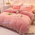 布団カバー 冬 ベルベット 4点セット 可愛い 寝具カバーセット ふわふわ 柔らかい 優しい肌触り 厚手 保温 防寒 おしゃれ フラットシーツ 枕カバー