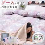 福袋 2026 ハッピーバッグ 羽毛布団 シングル 西川 グースダウン 90% ダックダウン 93% 掛布団 毛布 カバー付 冬 4点セット
