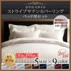 洋式用寝具カバー3点セットセミダブルサイズ 9色から選べるホテルスタイルストライプサテンカバーリング ベッドタイプ SD