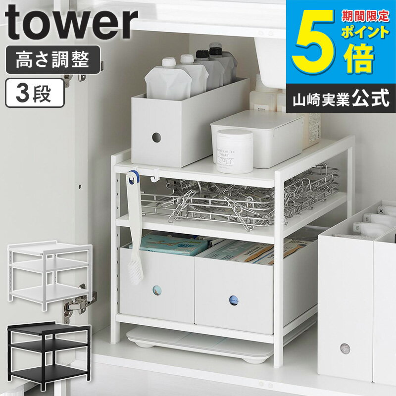 [ 高さ調節シンク下ラック タワー 3段 tower 山崎実業 ] シンク下 収納 ラック 調味料 食器 鍋 フライパン シンク下収納ラック 洗面台下 収納 洗面所 キッチン ランドリー おしゃれ シンプル ブラック ホワイト 2011 2012 netc5