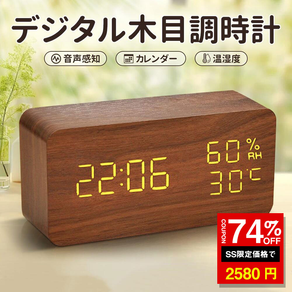 \SS激安/★74%OFF→2580円★目覚まし時計 デジタル時計 大音量 子供 置き時計 アラーム 時計 デジタル 温度計 温湿度計 木製 おしゃれ かわいい 明るさ調整 部屋に馴染み 日付 LED表示 カレンダー 音感センサー インテリア 結婚祝いプレゼント