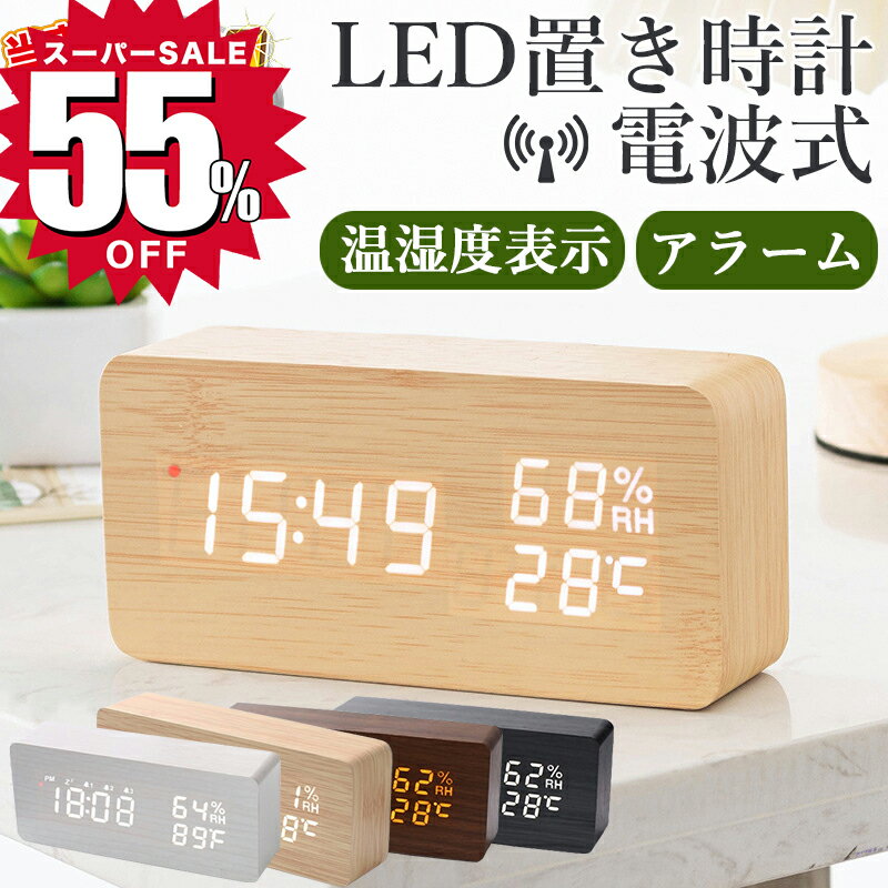 \スーパーSALE限定55%OFF!爆安/置き時計 電波時計 時計 LED表示 温度計 日付 湿度計 デジタル時計 LED時計 卓上 アラーム スヌーズ機能 置時計 スヌーズ 電子音 コンパクト おしゃれ アラームクロック 大音量 インテリア ベッドサイド 寝室 リビング 子供部屋