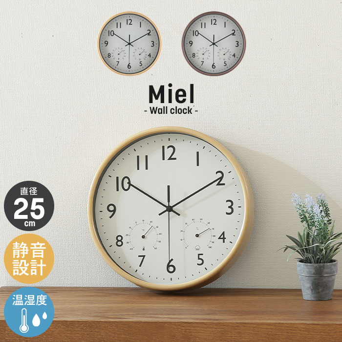 【楽天スーパーSALE10%OFF】時計 壁掛け 25cm 掛け時計 壁掛け時計 時計 壁掛け 壁掛 掛時計 直径25cm 温湿度計付き 温度計 湿度計 おしゃれ かわいい 静