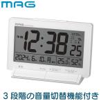 MAG マグ 置き時計 デジタル 電波時計 プログラム チャイム 4回 自由設定 音量切替 温度計 湿度計 温湿度計 カレンダー ライト ホワイト