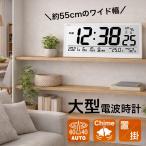 壁掛け時計 デジタル電波時計 大型 大きい時計 横幅55cm 置き掛け兼用 大画面 温度計 湿度計 カレンダー