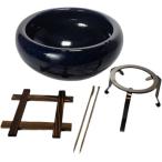 生子火鉢 10号火箸・五徳・井ゲタ付き信楽焼 伝統の火鉢 生子 深みのある青 陶器 彩り屋