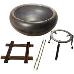 生子浅型火鉢 高級本わら灰付き(火箸・五徳・井ゲタ付き)