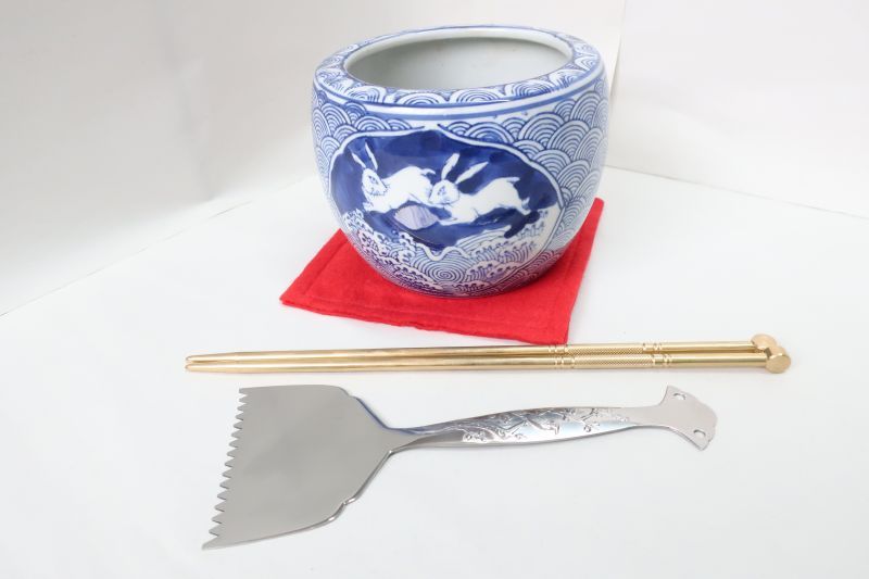 手火鉢 タコ柄 ブルー うずまき 長火鉢