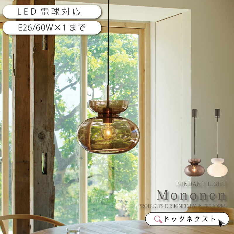 【10%OFFクーポン★30日スタート】 ペンダントライト インターフォルム ガラス おしゃれ 照明器具 天井照明 ペンダントランプ 照明 1灯 led対応 ダイニング カウンター キッチン 玄関 インテリア Mononen モノネン ブラウン ホワイト 新生活 引越