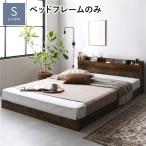 (タイムセール中) ローベッド シングル ベッドフレームのみ ブラウン LED照明コンセント宮棚付き
