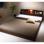 (タイムセール中) ローベッド ダブル ベッドフレームのみ ブラウン LED照明コンセント宮棚付き